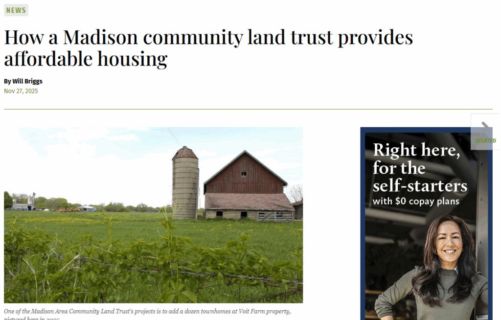 Madison Area Community Land Trust (MACLT) is leading the development of townhomes at the Voit property on Madison’s east side off of Milwaukee Street. This project will create opportunities for stable, quality, permanently-affordable homeownership that will multiply in impact over time. MACLT is seeing a major growth spurt, and is on the path to expand […]
